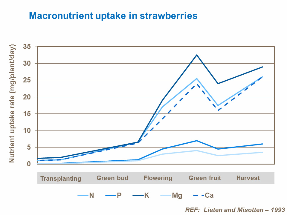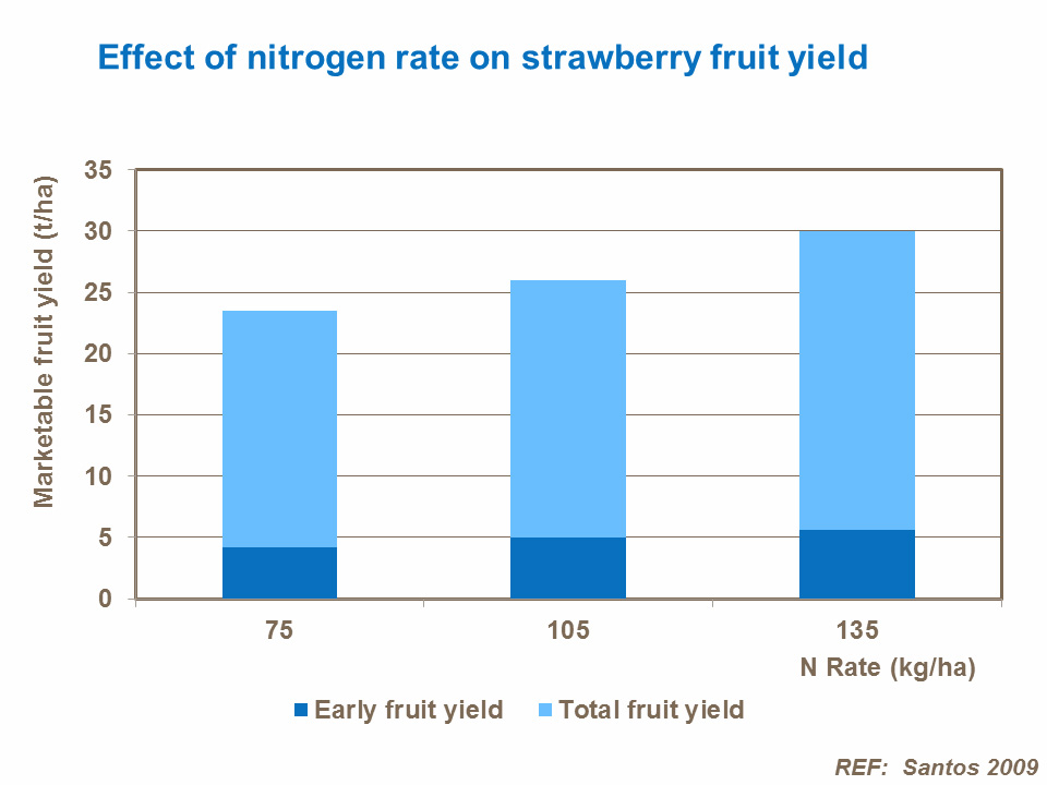 Podaci o apsorpciji potvrđuju da je za jednu tonu jagoda potrebno 3-3,5 kg azota.
